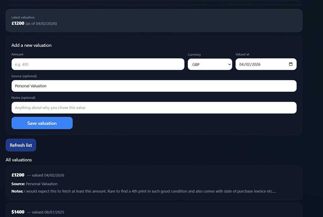 Collectaneum is designed for collectors who want to catalogue what they actually own, not just maintain a basic inventory.
