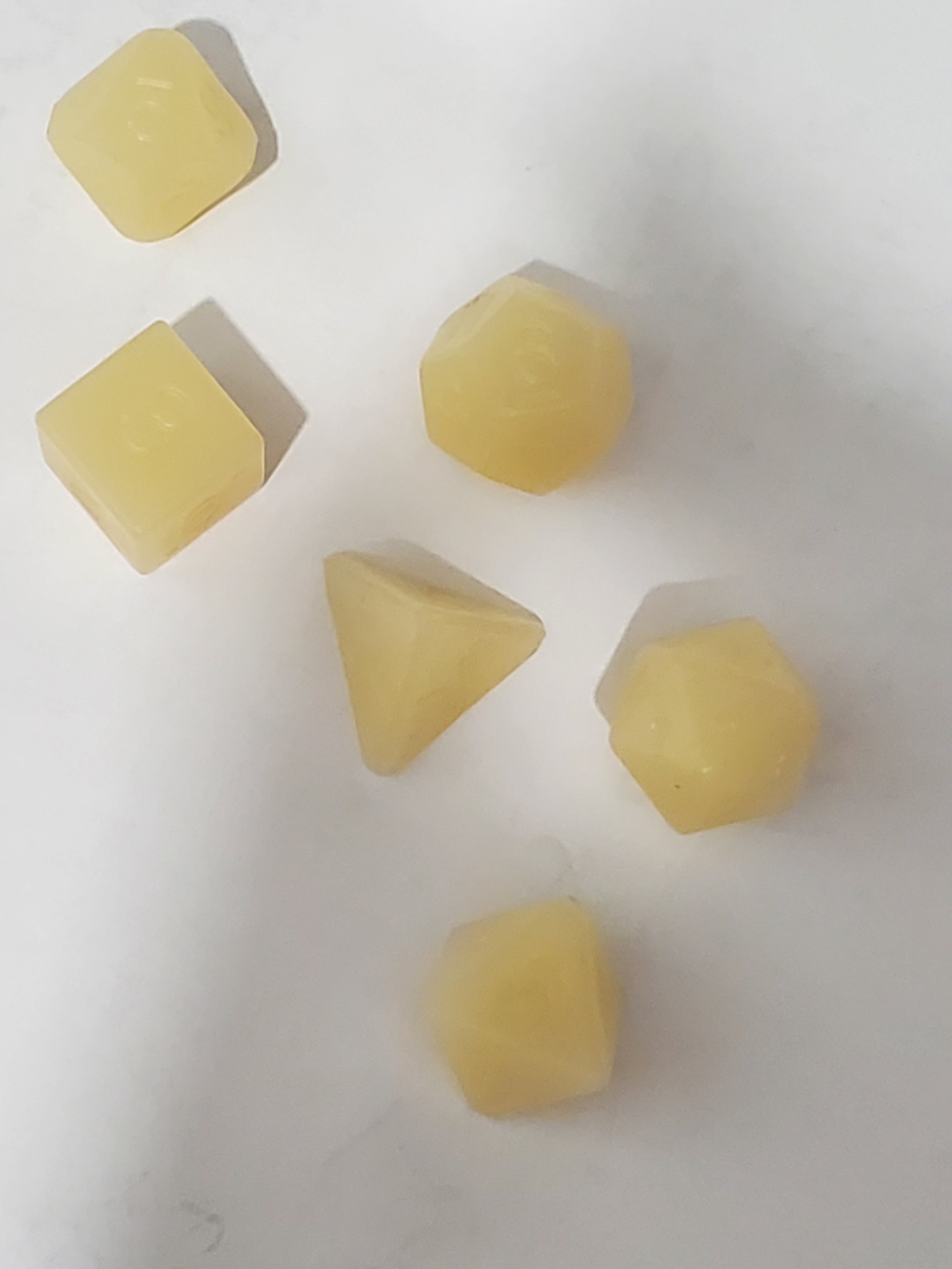 A dice set is often more than a single object. It may be a matched set, a partial set, a promotional issue, a convention release, or a mixed collection assembled over time. Similar-looking dice may have meaningful differences in material, numbering style, logo marks, or manufacturing origin.